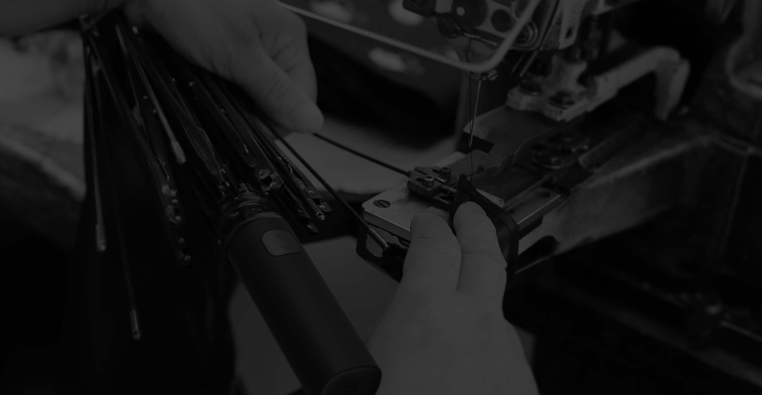*手動で無理に開閉しないでください。傘を閉じるときに、跳ね返って開くことはありませんが、「カチッ」となるまで完全に押してください。