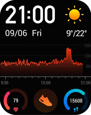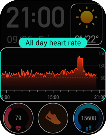 Huamiが独自に開発したBioTrackerTM PPGバイオトラッキング光学センサーを搭載、毎日24時間の高精度心拍数モニタリング、運動中の心拍数もモニタリングでき、業界最先端の不整脈(心房細動を含む)自動検出をサポートしています。さらに、座りすぎ通知、カロリー消費、睡眠分析などの健康管理機能を搭載、健康改善をサポートします。