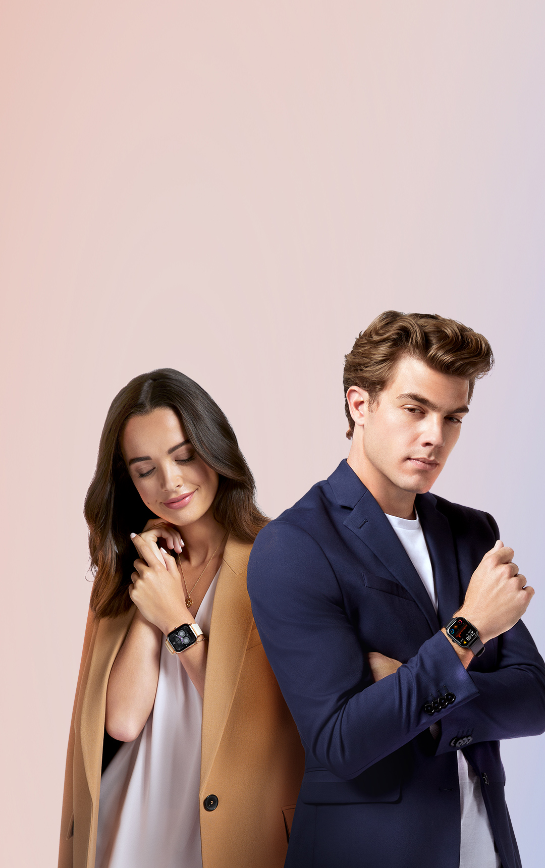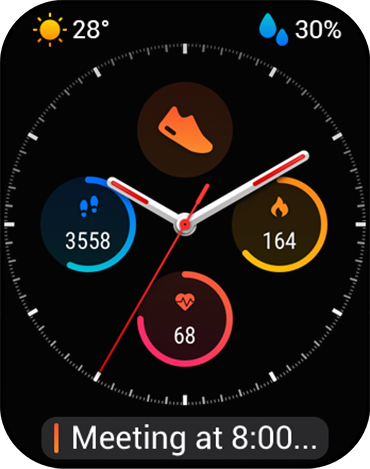 スクエアタイプの文字版は、同じ直径の円形の文字版より表示領域が広く、より多くの情報表示可能なため、心拍数、カレンダー、天気などの気になる情報をカスタマイズできるスクエアタイプを採用しました。重要な情報にすぐにアクセス可能。 さらに、秒針タイプ、デジタルタイプ等、100種類以上の美しい文字盤から選択可能です。