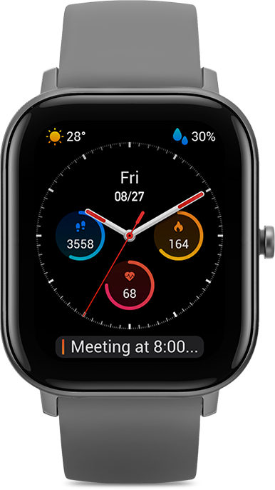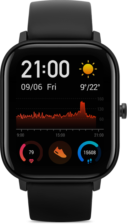 Amazfit GTSは高精細Retinaディスプレイを採用しています。ピクセル数、最大341ppi 今までにない明瞭さと繊細な表示。この新しい1.65インチAMOLED Retinaディスプレイは、カラーディスプレイをさらに高いレベルに引き上げました。100%NTSC色域、超高彩度、リアルで鮮明なディスプレイ、さらに、クリアで滑らかな2.5D曲面ガラスの採用により、高い耐久性も備え、使い始めた際の感動のまま長期間お使いいただけます。
