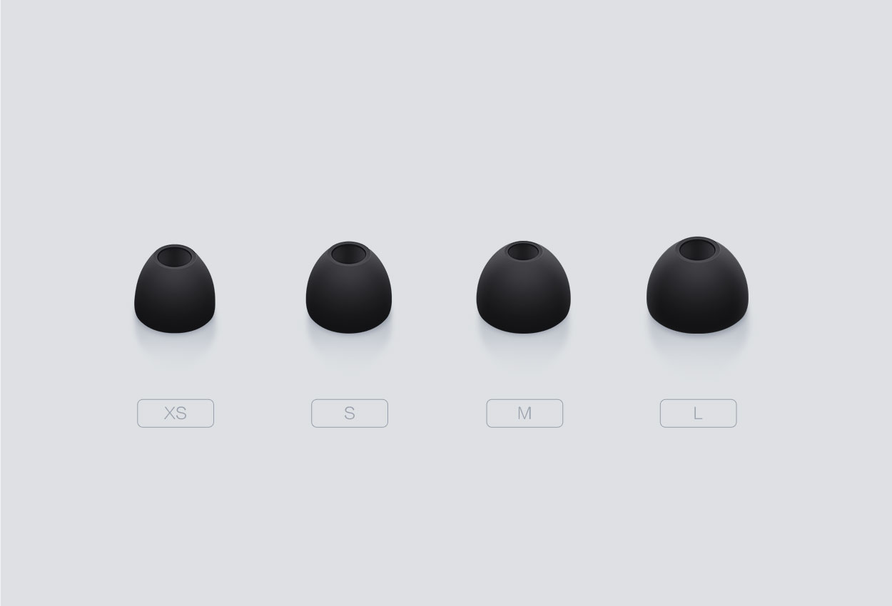 イヤーピースには繊細で柔らかく、皮膚に優しいシリコンを選びました。好みにあったイヤーピースを見つけてもらうために、4種類のサイズを用意しています。